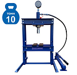 Усилие 10 тонн. Настольный. Ручной. Для запрессовки подшипников, деталей машин, втулок и т.п. в автосервисе, мастерских по ремонту лодочных моторов, велосипедов и т.п. Гидроцилиндр с пуансоном имеет возможность перемещения по всей ширине рамы. Контроль усилия – визуально по шкале манометра. Интервал пуансона 135 мм. Рабочее окно: 400 x 350 мм.