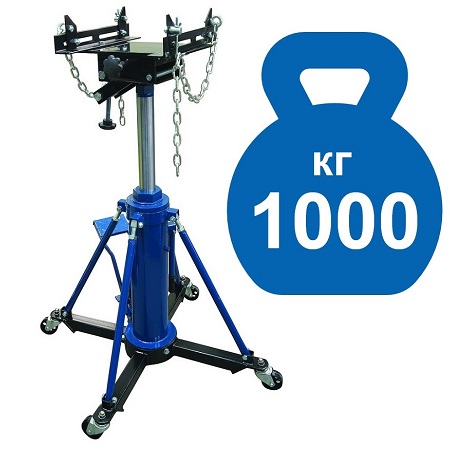 Стойка трансмиссионная гидравлическая, грузоподъемность 800 кг. Высота с максимальным ходом цилиндра: 1842 мм. Вес: 74 кг.