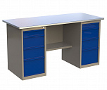 Верстак двухтумбовый 1600 ML0/ML4 поставляется в разобранном виде (4 элемента). Нагрузка на столешницу до 600 кг. Стандартный цвет: корпус - серый глянец RAL 7030, ящики и двери тумб - синий RAL 5017. Размеры: 855x1600x700 мм. Масса: 97 кг.