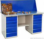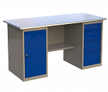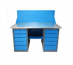 Двухтумбовый. Допустимая нагрузка на столешницу 1000 кг. Опорные элементы выполнены сварными из холоднокатаной стали. Для выполнения сборочных, ремонтных, слесарных, монтажных и других видов работ на производстве, в сервисных центрах, мастерских, гаражах, а также для обучения технологии в учебных заведениях. Комплектуется полкой-стенкой, расположенной под столешницей для удобного размещения габаритного инструмента и оснастки. Размеры верстака: 855x1596x696 мм. Вес: 121 кг. Поставляется в 4 комплектациях на выбор.