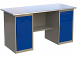 Двухтумбовый. Допустимая нагрузка на столешницу 1000 кг. Опорные элементы выполнены сварными из холоднокатаной стали. Для выполнения сборочных, ремонтных, слесарных, монтажных и других видов работ на производстве, в сервисных центрах, мастерских, гаражах, а также для обучения технологии в учебных заведениях. Комплектуется полкой-стенкой, расположенной под столешницей для удобного размещения габаритного инструмента и оснастки. Размеры верстака: 855x1596x696 мм. Вес: 103 кг. Поставляется в 4 комплектациях на выбор.