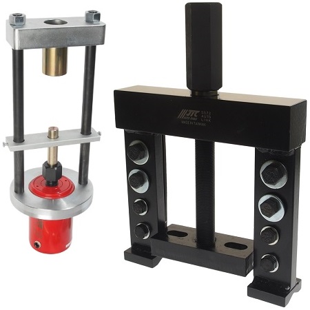 Пресс пневмогидравлический — для увеличения скорости работы неответственных деталей (втулки), где есть поток по выпрессовки, ручной привод — для точного дозирования усилия ответственных деталей (подшипники). Насос — 2 плунжера. Лебёдка для подъёма/опускания каретки. Манометр. Рекомендуется для выпрессовки подшипников, деталей машин, втулок и т.п. в автосервисе. Усилие 50 тонн. Рабочее окно 690х1010 мм. Доставка по РФ и ТС. Гарантия 12 мес.
