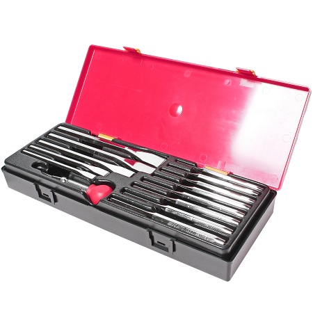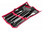 Набор выколоток для пневмомолотка в прочном презентабельном боксе (6 предметов). Длина 177 мм. Размеры: 5.2, 6.5, 6.9, 7.7, 9.3, 12.7 мм. Материал: среднеуглеродистая хромомолибденовая легированная сталь.