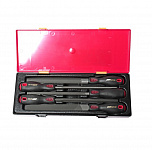 Набор отверток в прочном презентабельном боксе (8 предметов). В комплекте: отвертки со сквозным стержнем -5 шт, отвертка с двухсторонней насадкой - 1 шт, отвертки с одноцветной рукояткой- 2 шт.