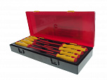 Набор отверток диэлектрических в прочном презентабельном боксе (8 предметов). В комплекте:4 шлицевые отвертки: 2.5x75L, 4x100L, 5.5x125L, 6.5x150L; 4 крестовые отвертки: РН0x60L, PH1x80L, PH2x100L, PH3x150L.
