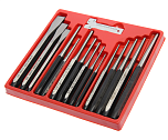 Набор выколоток и зубил с кернером в кейсе 5 предметов. В комплекте: выколотка: Ø 4 мм, зубило: 5 мм, ручное зубило: 12 мм, кернер: Ø 4 мм, зубило конусообразное: Ø 3 мм