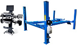 Комплект четырехстоечный подъемник для сход-развала ВСЕХ авто г/п.-4т. с ручной траверсой. Гарантия 2года. В комплекте: анкерные болты 16шт. + противооткатные ограничители 2шт. + противооткатные упоры 2шт. Для любых стендов сход-развал. ВАЖНО!!! ДЛИНА ПЛАТФОРМЫ - 4130мм. — это позволяет прокатывать авто на подъёмнике. Подъём 1850мм, Между колоннами 2775 мм. Усиленный — 960кг металла. + T 7202 TAB Стенд сход-развал 3D. 2 неподвижные видеокамеры. Напольный. Серия Basic. Для работы на яме или подъемнике. Высокая точность и скорость работы-40 кадров в секунду. База данных 65 000 авто.