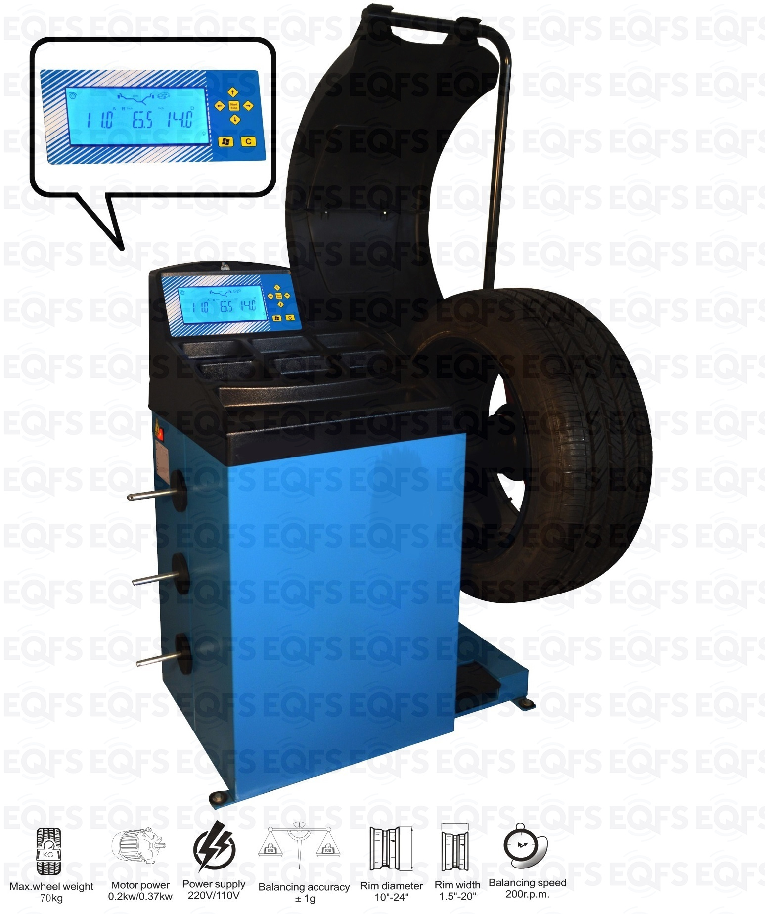 Автомат. Ввод 3-х параметров ( диаметра диска, дистанции и ширины диска), цифровой LED дисплей, напряжение 220 В. Статическая и динамическая балансировка, ALU-программы для алюминиевых дисков. Программа разделения и скрытой установки грузиков за спицами SPLIT. Режимы калибровки и самодиагностики. Педаль тормоза. Для балансировки колёс легковых автомобилей, мотоциклов и лёгких грузовиков с диаметром диска с резиной до 800 мм. Размеры диска: ширина 3–10” (76-254 мм) , диаметр диска 10–24” (254÷609 мм). Прочный вал  Ø - 40мм. Вес колеса 70 кг. Гарантия 18 мес – наш монтаж, 12 мес – самостоятельная установка.