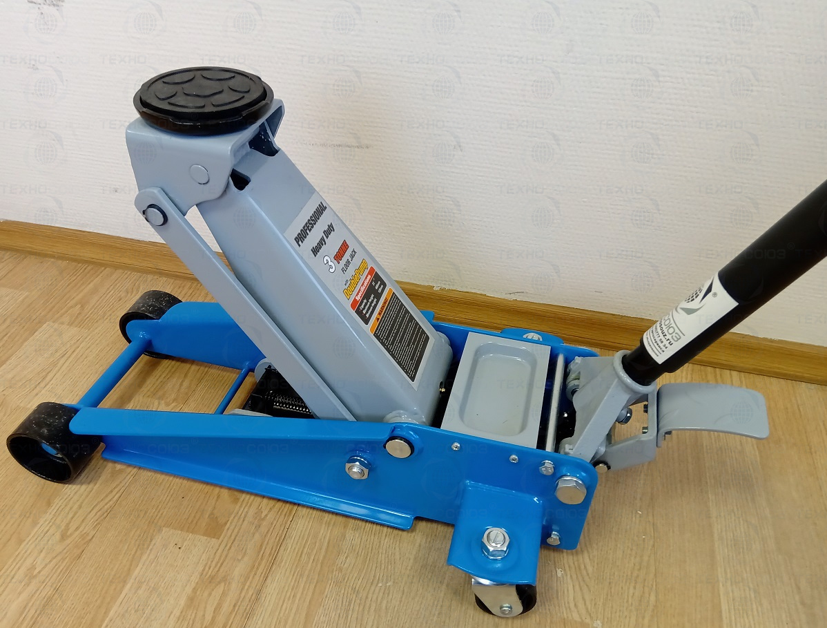 Двухплунжерный механизм быстрого подъема. С педалью. Высота подъема 120-460 мм. Гидравлический подкатной домкрат грузоподъемность 3,0 т. Домкрат рекомендуется к применению в шиномонтажных мастерских и автосервисах. Цвет темно-синий.