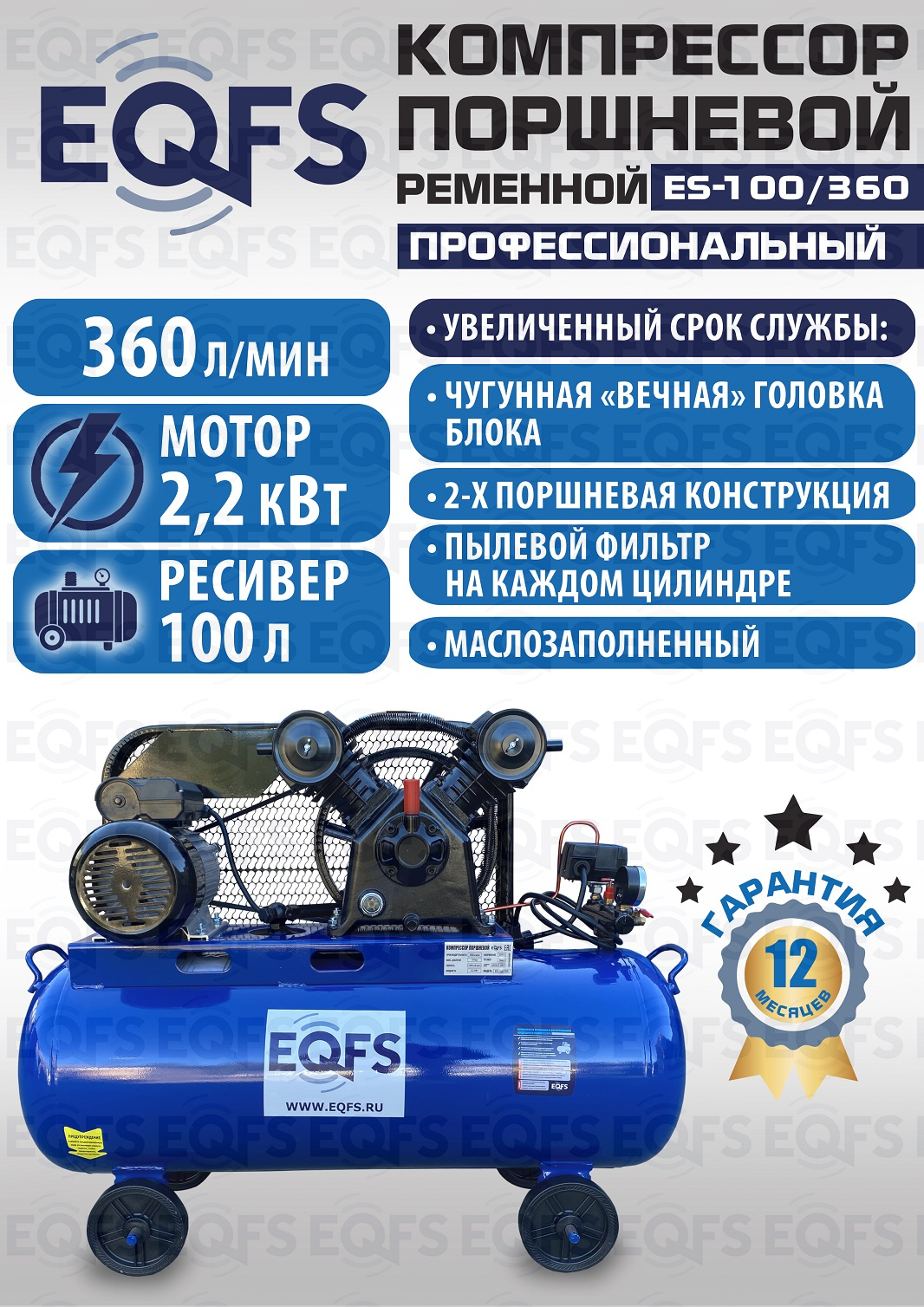 Компрессор воздушный, передвижной, поршневой, масляный, двухцилиндровый. Быстро достигает нужного давления. Двухпоршневая головка двигателя уменьшает износ деталей и увеличивает срок службы. Ремённый привод — предохранят мотор от поломки. Идеальное решение для небольшой мастерской, шиномонтажа, гаража или дачи. Давление 8 Атм. Производительность 360 л/мин. Мощность 2.2 кВт. Напряжение 220В. Ёмкость ресивера 100 л. Гарантия 12 месяцев.