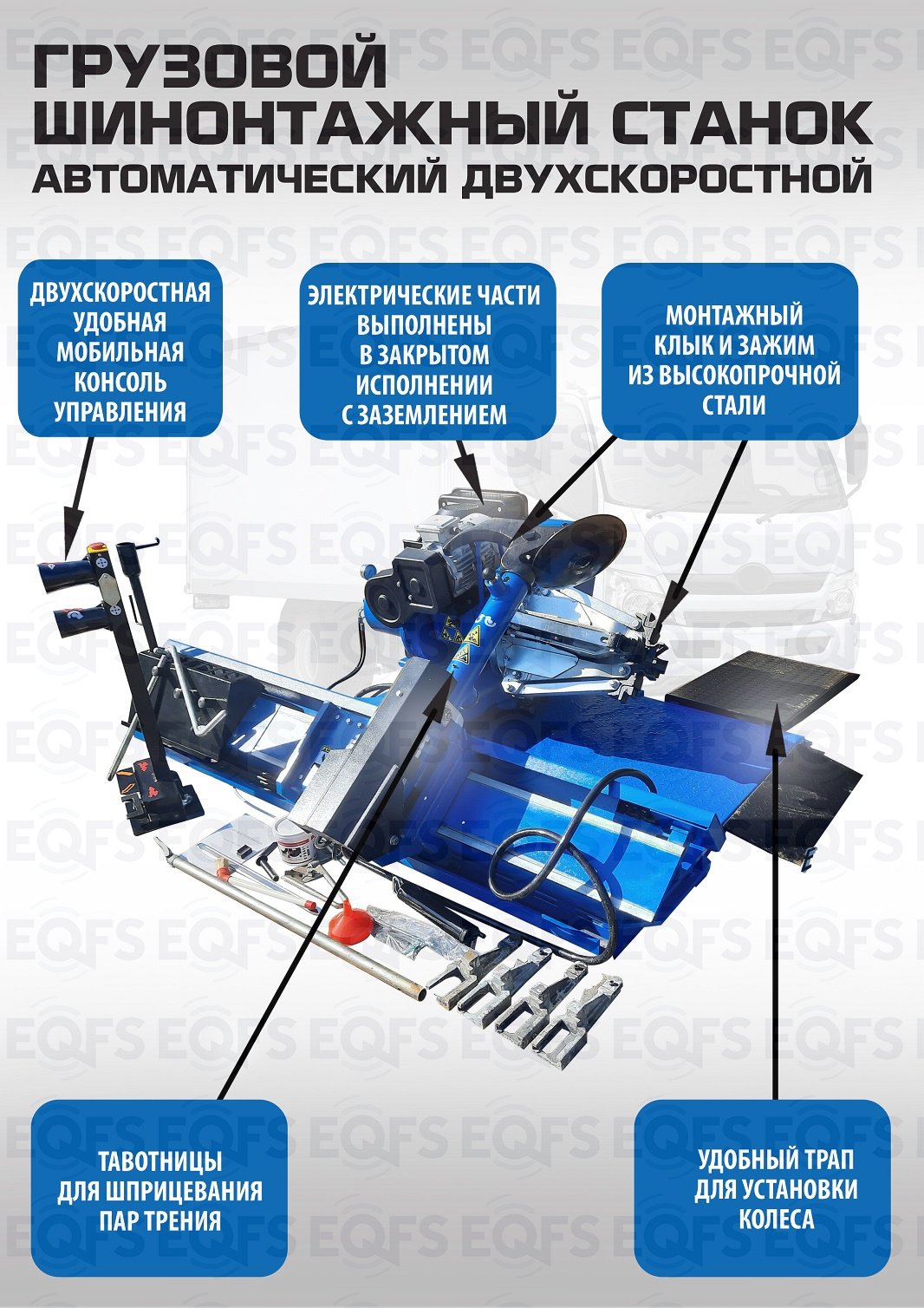 ·         Цвет грузового шиномонтажного станка синий.