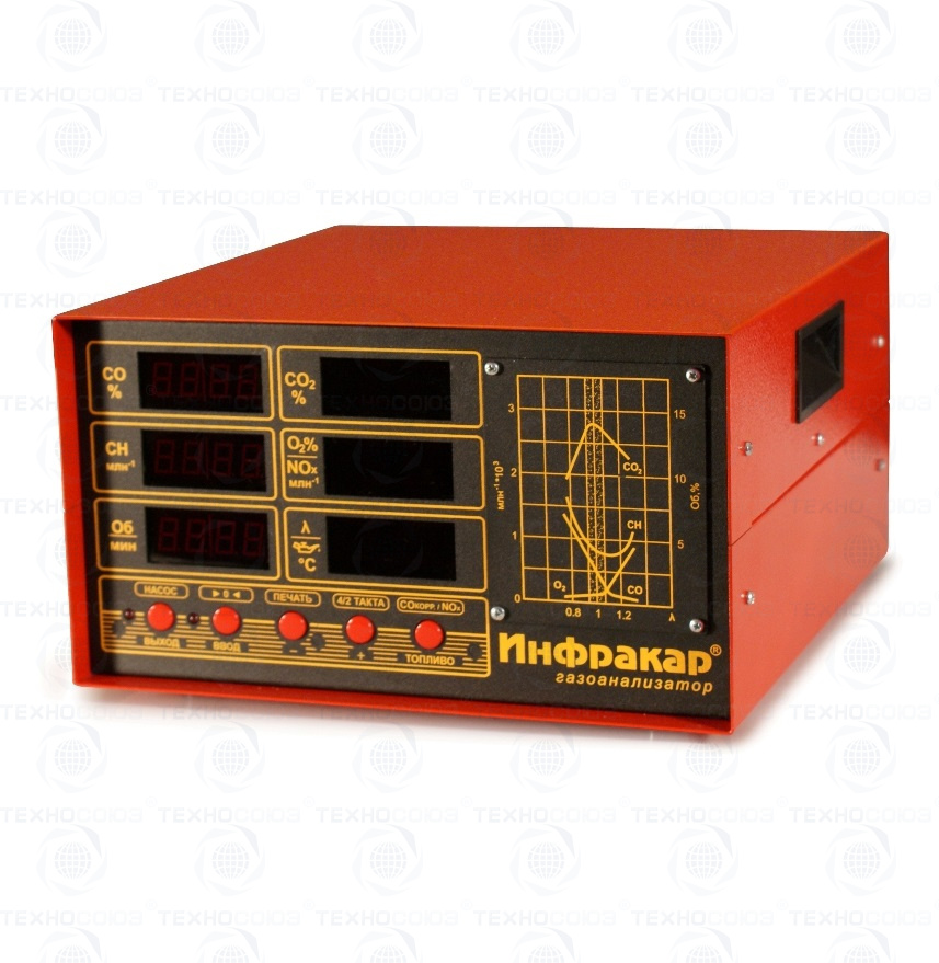 Автомобильный 2-х компонентный газоанализатор «Инфракар 12Т.01 предназначен для измерения объемной доли оксида углерода (СО), углеводородов (CН) (в пересчете на гексан) в отработавших газах автомобилей с бензиновыми двигателями. Тахометр + RS-232 + Автослив конденсата + Автоподстройка нуля + Работа с ЛТК и мотортестерами. Внесен в Госреестре средств измерений РФ, Республики Беларусь и Казахстан.