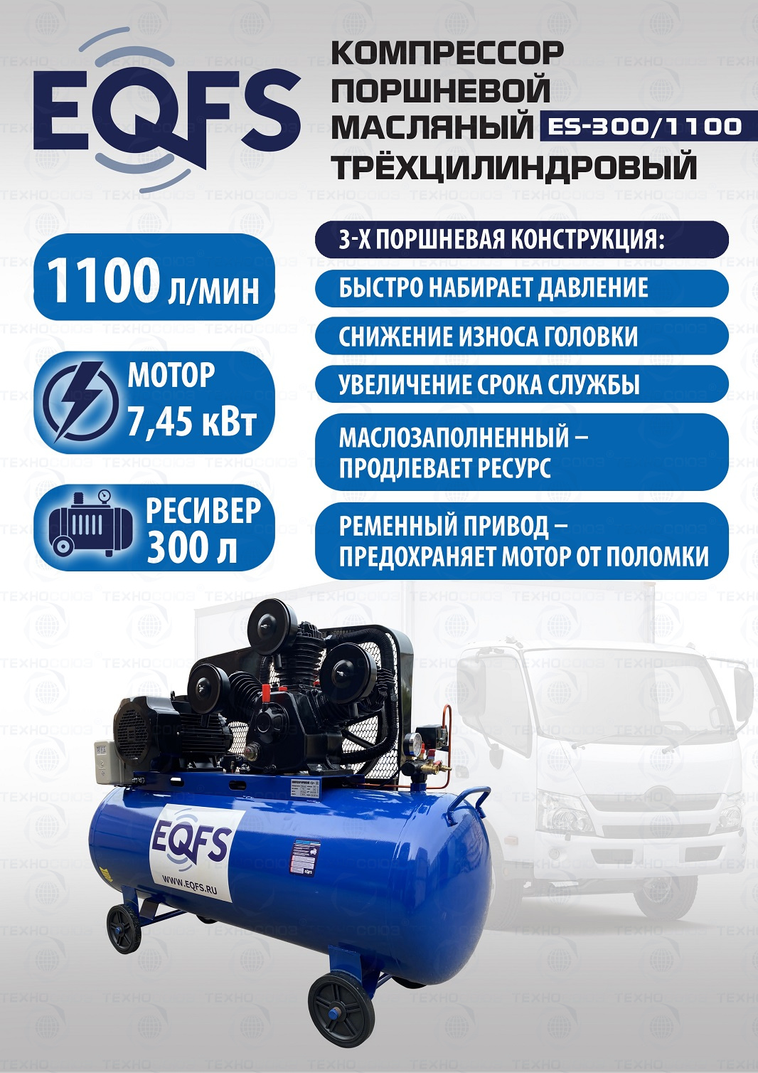поршневого компрессора производительность 1100 л/мин. Мощность 7,45 кВт. Напряжение 380В. Ёмкость ресивера 300 л.