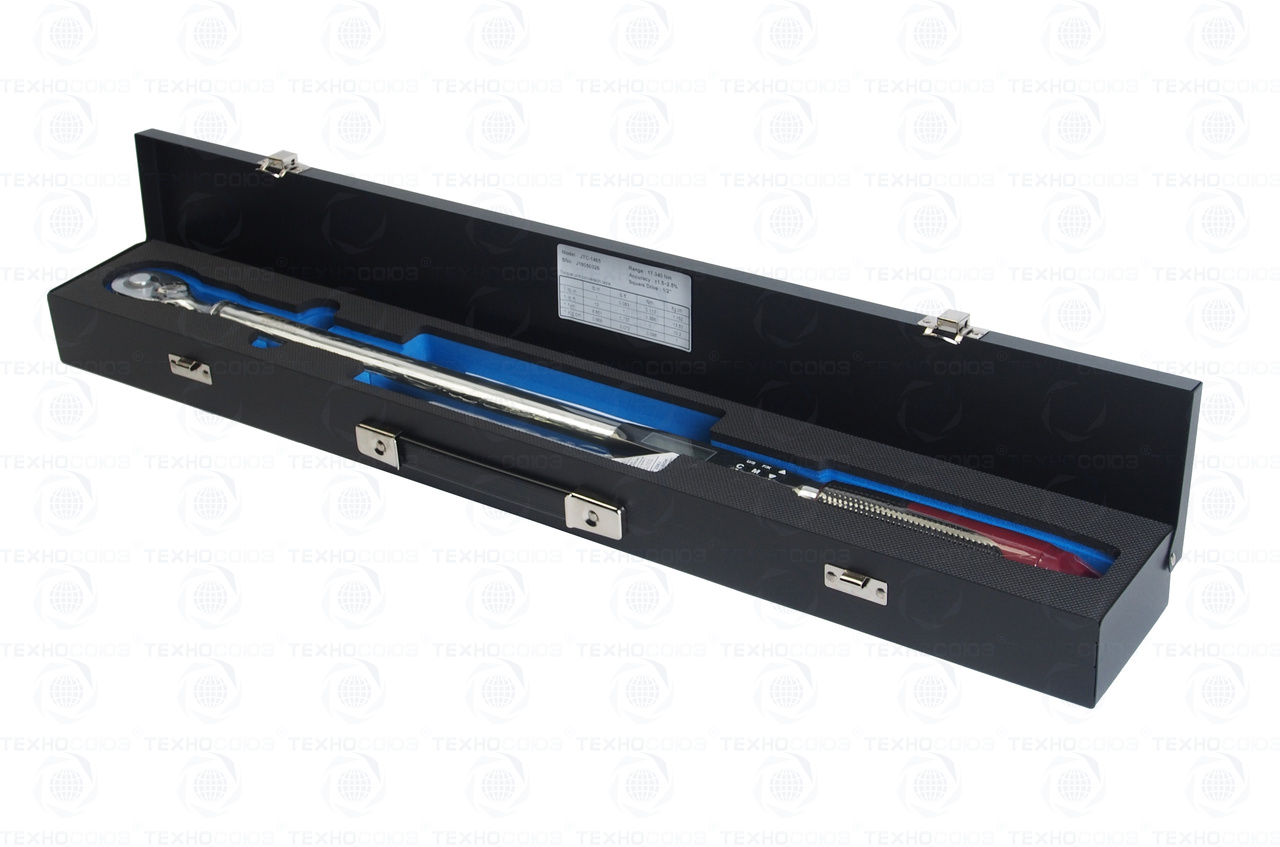 Ключ динамометрический с цифровой индикацией. Храповый механизм на 72 зуба, угол поворота 5'. Посадочный квадрат: 1/2". Диапазон усилий затяжки: 17-340 Н·м. Длина 666 мм. Цифровое считывание значения крутящего момента с функцией запоминания на 30 ячеек памяти. Жидкокристаллический экран с подсветкой. Мигание светодиода и звуковой сигнал. Если крутящий момент достигает 90% от предустановленного значения включается вибрационный сигнал.