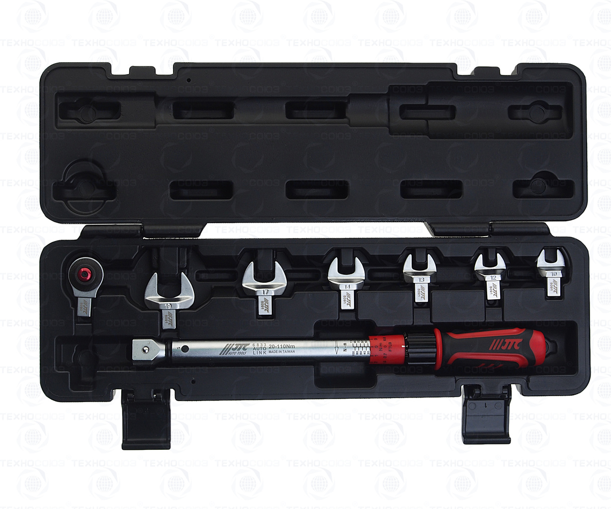 КЛЮЧ ДИНАМОМЕТРИЧЕСКИЙ 20-100НМ 9-12ММ С НАСАДКАМИ 10-19ММ 8 ПРЕДМЕТОВ JTC-6833K