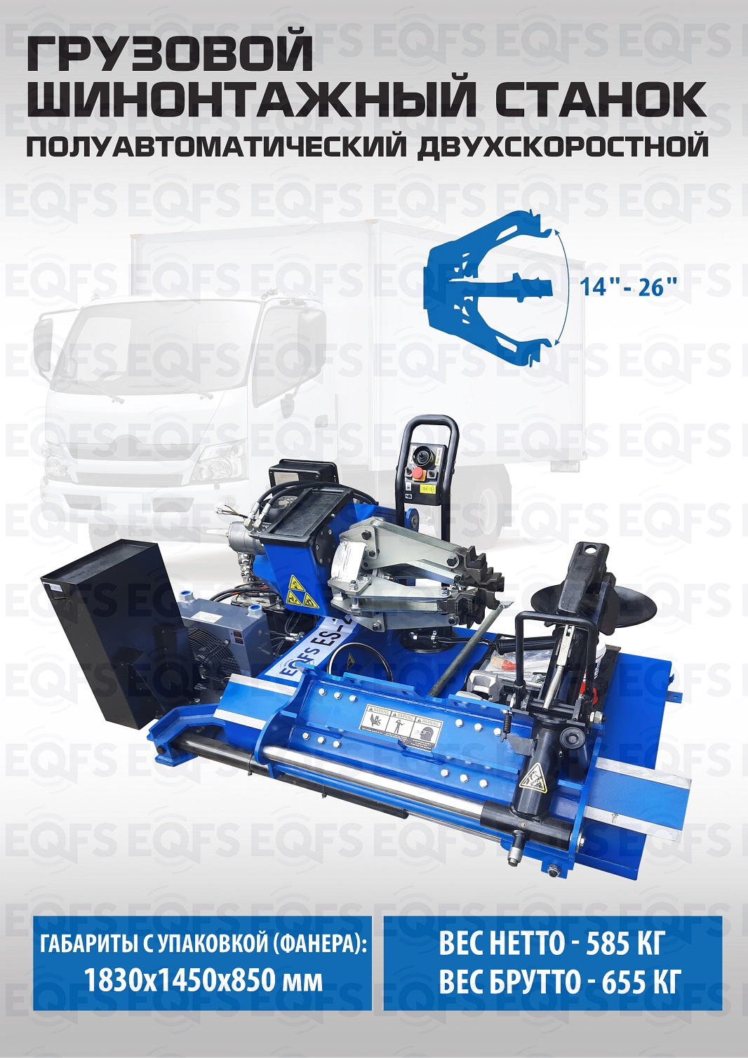 ES-26 грузовой шиномонтажный станок Нет редуктора- нет трущихся деталей. Защита от перегрузок и неправильной эксплуатации. Усиленная стальная рама. Мобильная консоль управления.  2-х скоростной, 14÷26”. Мощность привода 3,0 кВт. Гарантия 18мес. Диски сталь, AL, с кольцами и без. Колесо макс. Ø1600 ширина 780мм, до 500кг.