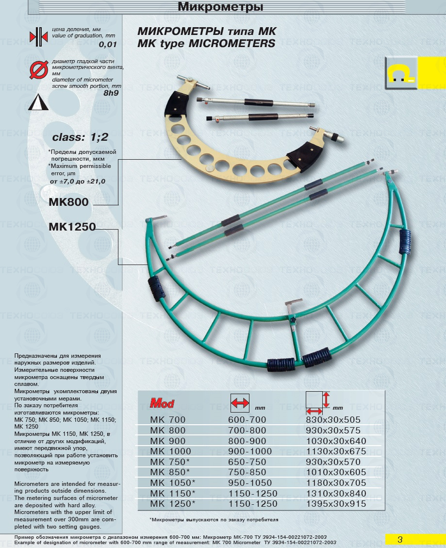 Цена деления 0,01 мм. Диапазон измерения от 800-900 мм. Для измерения наружных размеров изделий. Измерительные поверхности микрометра оснащены твердым сплавом. Микрометры укомплектованы установочная мера 2 шт. Класса точности 1. ГОСТ 6507-90. Поставляется в двух вариантах с поверкой и без поверки!
