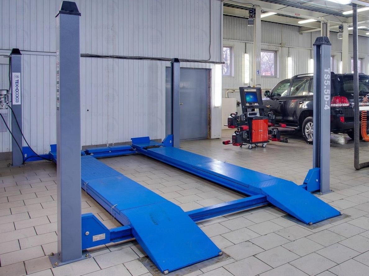 Автомобильный электрогидравлический четырехстоечный подъемник грузоподъемность 5.5т.