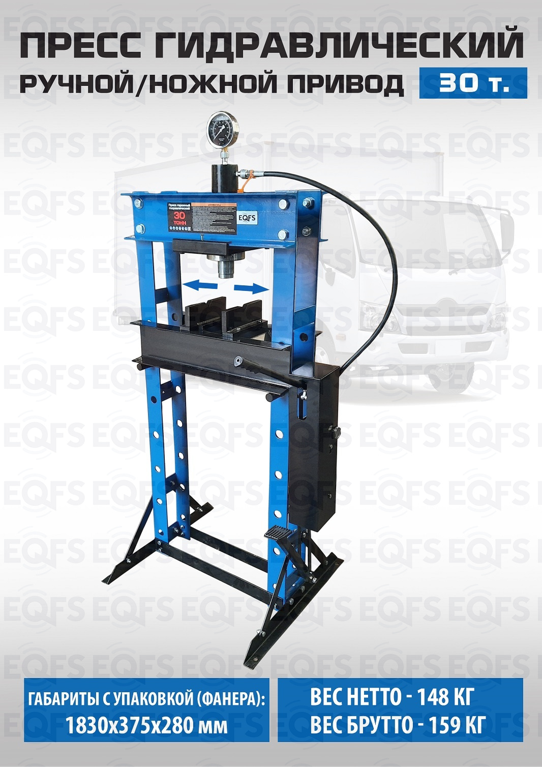 Пресс гидравлический. «Свободные руки» — ножной / ручной. Усилие 30 тонн. Поршень приводится в действие нажатием на ручку или педаль. Рекомендуется для выпрессовки деталей машин, втулок и т.п. в автосервисе, гараже и СТО. Гидроцилиндр с пуансоном имеет возможность перемещения по всей ширине каретки. Цвет синий. Подъёмная площадка регулируется по высоте и фиксируется в требуемом положении. Пуансон 0-160 мм. Рабочее окно 530х980 мм. Доставка по РФ и ТС.
