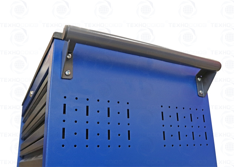 Тележки инструментальные серии PROFFI 795 предназначены для использования на предприятиях любого профиля занятых ремонтом и изготовлением различной продукции. Тележки изготовлены высотой 795 мм что позволяет размещать их под верстаками и рабочими столами серии PROFFI, что позволяет сэкономить рабочее пространство помещении. На боковые стенки инструментальной тележки нанесена перфорация размером 25х25 мм и диаметром отверстия 8 мм, что позволяет устанавливать на них навесной инструмент или крючки. Наибольшей популярностью тележки инструментальные пользуются в сфере авторемонта и обслуживания автомобилей. Тележки имеют выдвижные ящики на шариковых телескопических направляющих полного выдвижения с фиксацией в закрытом положении, предотвращающее открывание при передвижении тележки. Ящики имеют центральный замок, который позволяет ограничить доступ посторонних лиц к содержимому ящиков. Тележка инструментальная изготовлена из высококачественного металла ведущих Российских производителей, покрашена порошковой краской производства Германии, имеет итальянскую и турецкую фурнитуру. Тележки для инструмента оснащены двумя не поворотными колесами диаметром 100 мм, одним поворотным и одним поворотным со стопором, которое фиксирует тележку и предотвращает непроизвольное скатывание.