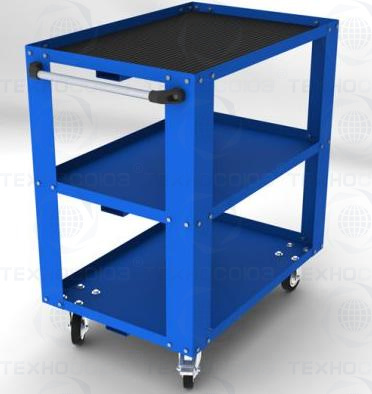 Тележка инструментальня открытая, трехполочная. Идеально подходит для перемещения и хранения небольших агрегатов(стартеры, генераторы, и т.д.) в слесарном и кузовном цеху.