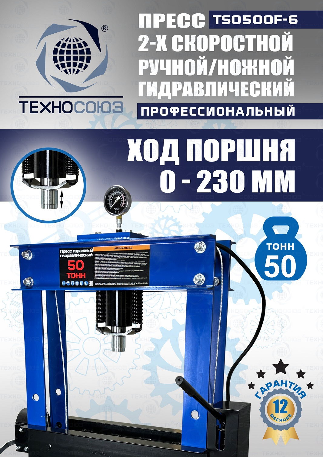 TS0500F-6 Пресс гидравлический ручной/ножной, 50 тонн