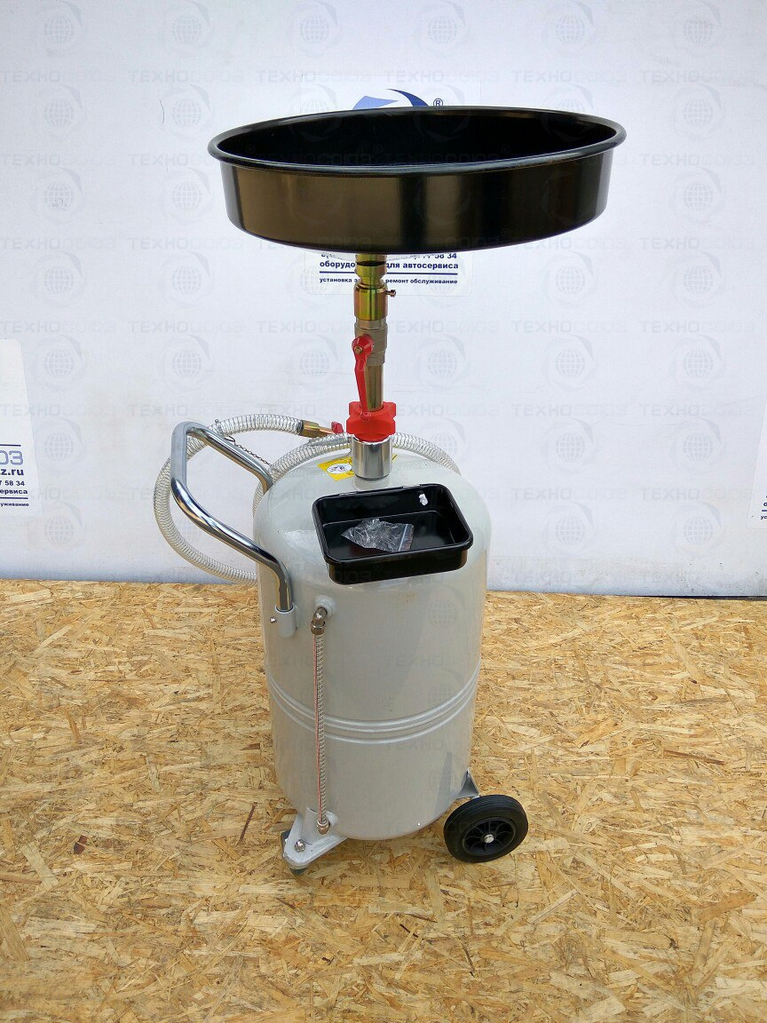 Емкость для слива масла (маслосборник), емкость бака 65 л, с подъемной ванной емкостью 15 л, длина шланга 2м, максимальная высота 1780 мм, давление слива масла 0,5 бар, вес 22кг.
